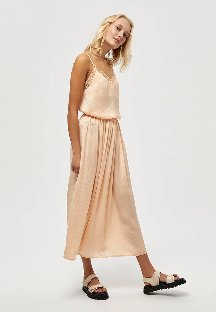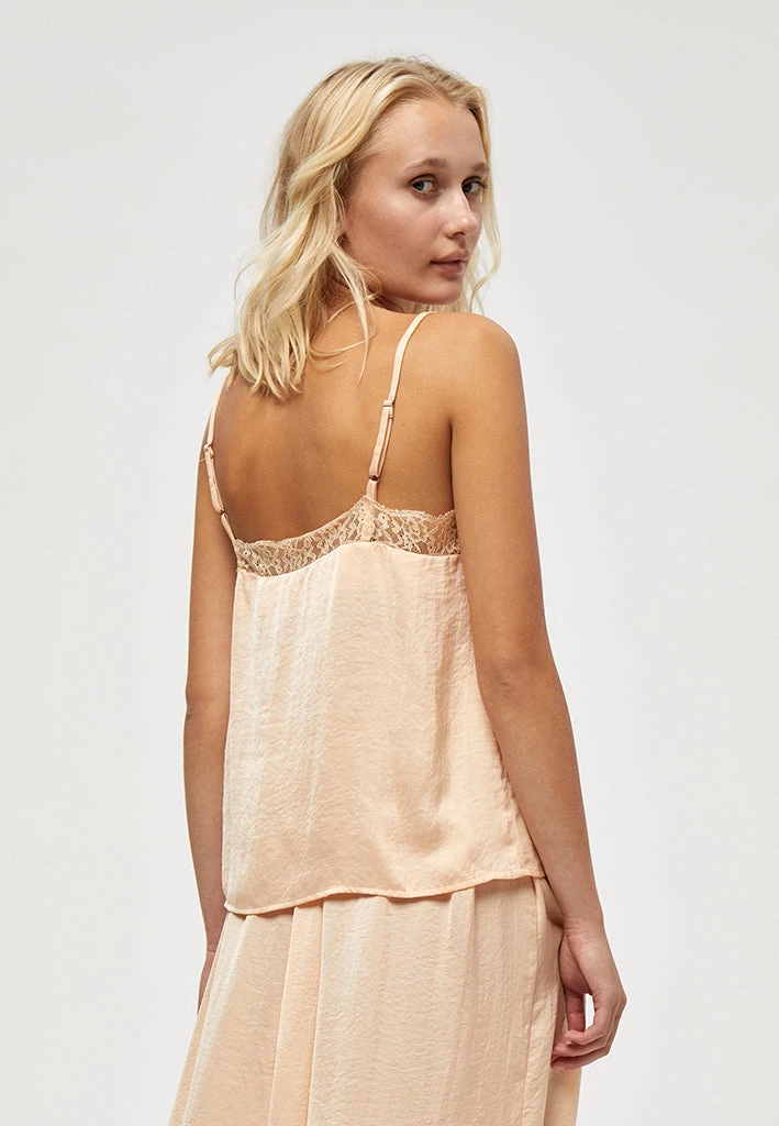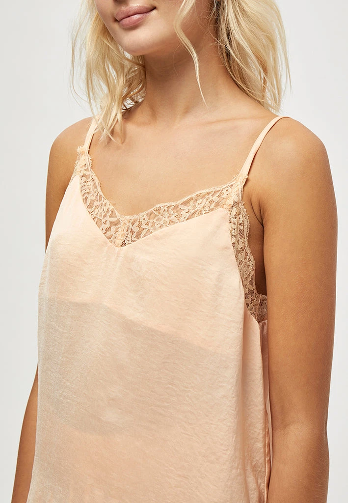 The Cam top is a sleek and elegant top. It has thin straps and a V-neck. The top has lace details at the top giving it a feminin look.