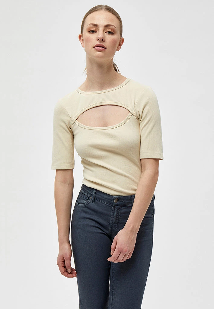 Lovely tee with a round neck and short sleeves. The tee has a cool cut out making the tee more eye catching.