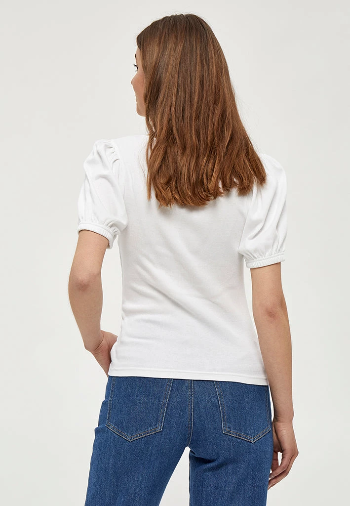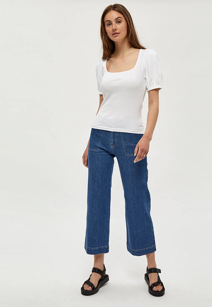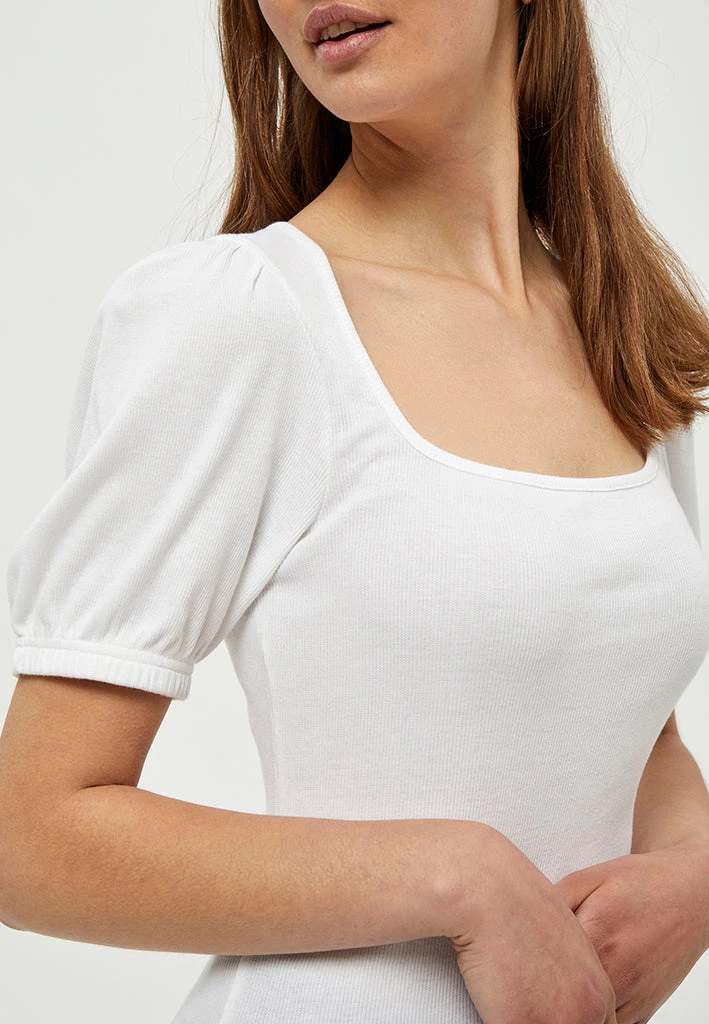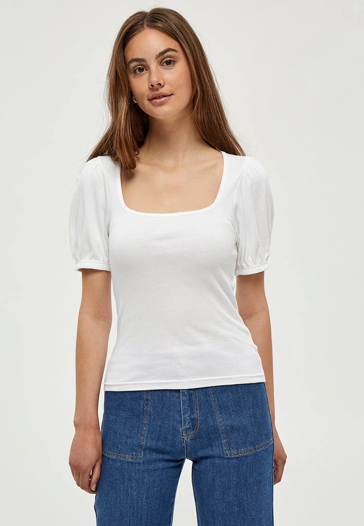 Lovely tee with a squared neckline. The tee has short sleeves with volume.