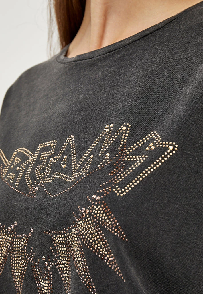 Lovely tee with a round neck. The tee has a cool print with stones.